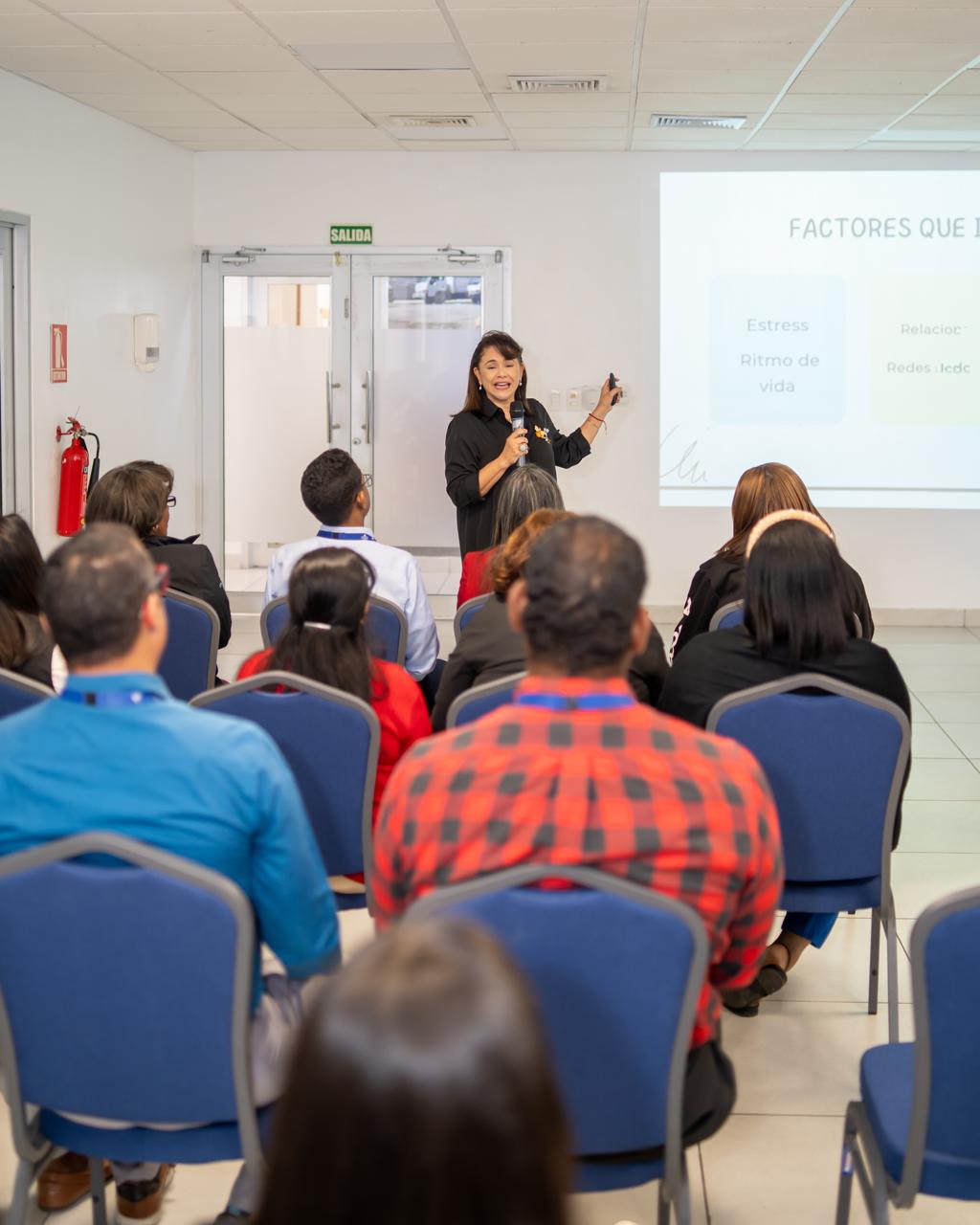“Cuidarse en un acto de responsabilidad. ¿Quién es responsable de ti? Preguntó la psicóloga clínica Cristal Santana al abordar la charla, en la que indicó que la comparaciones, los problemas familias, la falta de descanso y el silenciar sentimientos son estresores importantes que limitan un buena salud mental.