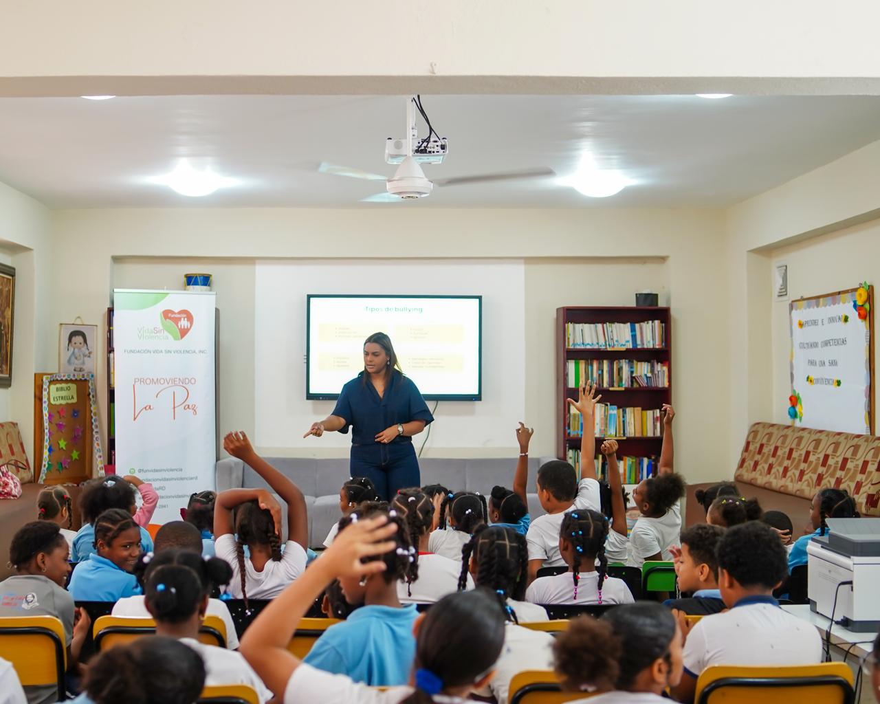 Una jornada educativa muy participativa. La Fundación Vida Sin Violencia agradece a la coordinadora del departamento de psicología, licenciada Yocasta Peña y al personal docente la oportunidad brindada y su compromiso de fomentar la convivencia pacífica.